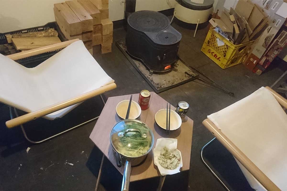 そうそう!いのししの肉を頂いたので薪ストーブでしし鍋をしました